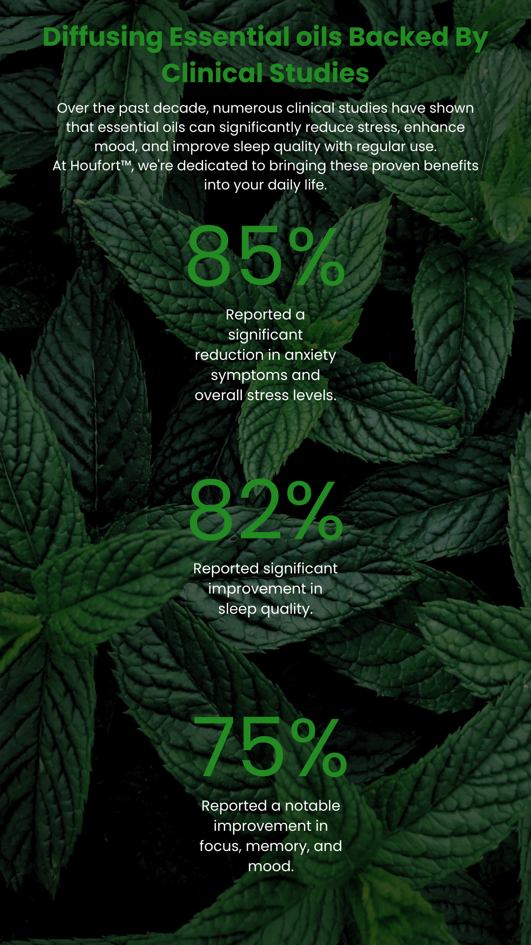 Essential oils can enhance your well-being in many ways. They help reduce stress, boost your mood, improve focus, and promote better sleep. When used in a diffuser, they also purify the air and fill your space with refreshing scents.